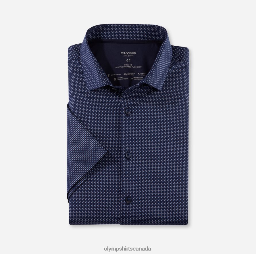 An expressive start to spring starts with this OLYMP 24/Seven Dynamic jersey shirt. The cool multicolour design is printed on classic marine and is therefore dress code-friendly. Of course, the rest is also cool: short sleeves, lightweight cotton fabric and popular breathable, quick-drying and odour-neutralizing properties are ideal features when the temperatures start rising. The trendy OLYMP Level Five shirt is cut in a close-fitting body fit and has a Modern Kent collar. In high-quality GREEN CHOICE standard fabric.