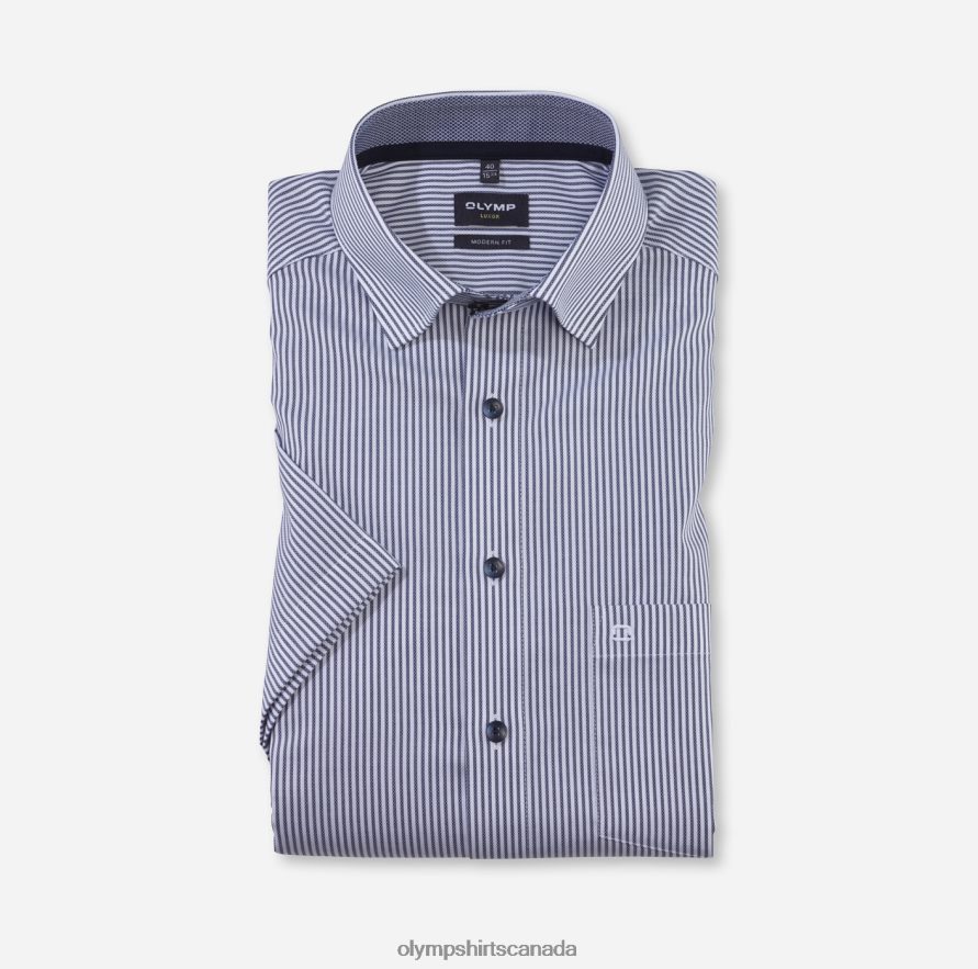Stripe designs are a must in any business wardrobe! The fine, non-slip textured weave in deep marine and white gives this shirt its special tailor-made elegance. OLYMP Luxor modern fit: made of pure cotton that features fashionable accents such as the distinguished under-button-down collar and contrasting trim. In a slim-fitting, slightly tailored cut with summery short sleeves. OLYMP Luxor - style and statement in business.